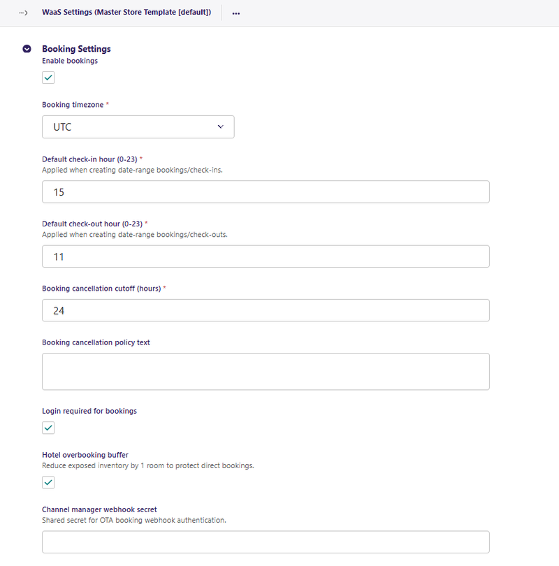 - Check the Enable Bookings box if you wish to enable the bookings feature.