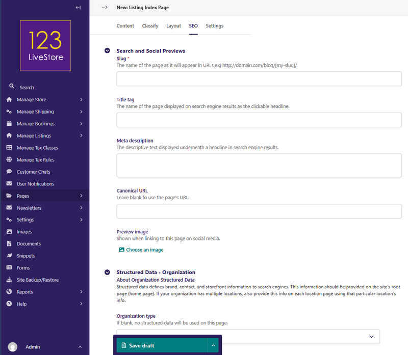 1. Click SEO: tab and enter the slug e.g., `browse-properties` or `listings` (this becomes part of the URL)