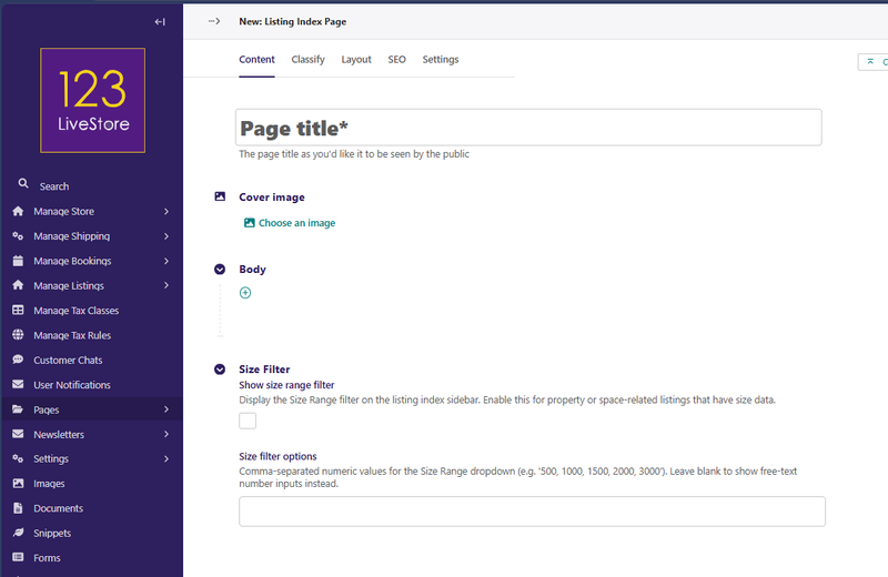 On the same page editor, you'll see a Size Filter section. This is useful for properties or spaces where size matters: