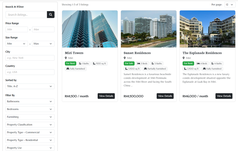 - Price Display: The price shown to visitors (e.g., "RM 450,000" or "RM 2,500/month")