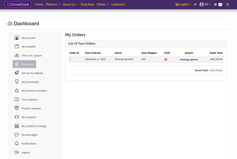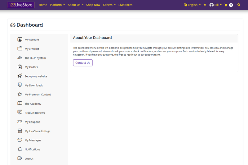 Please follow the instructions in the email and click the link to verify your email address. If your email is not verified, you will not be able to log in to 123LiveStore. If your email verified, you will automatically be logged-in to 123LiveStore and you will be taken to the 'Dashboard'.