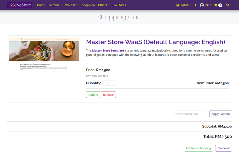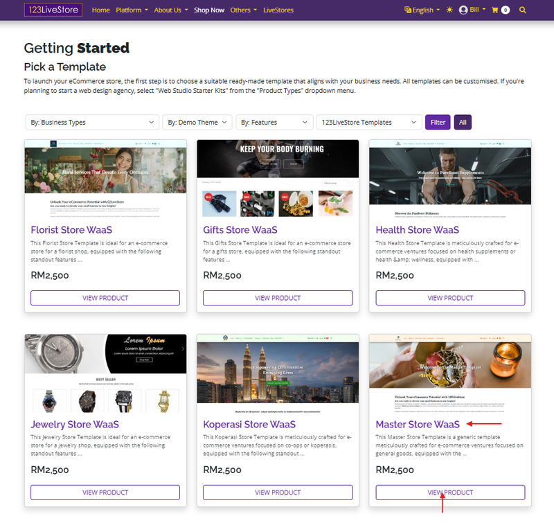 Before you can start configuring your site, you must have a valid subscription to a WaaS template. Log in and go to Shop Now to purchase a WaaS template that suits your niche. If there isn't one for your niche, pick the Master Store WaaS, the generic template, as a starting point for your e-commerce store. Alternatively, you can use any of the templates, even if they are not specifically for your niche, because every aspect of the template can be edited to suit your needs.