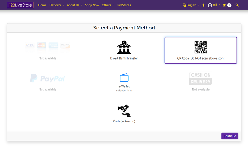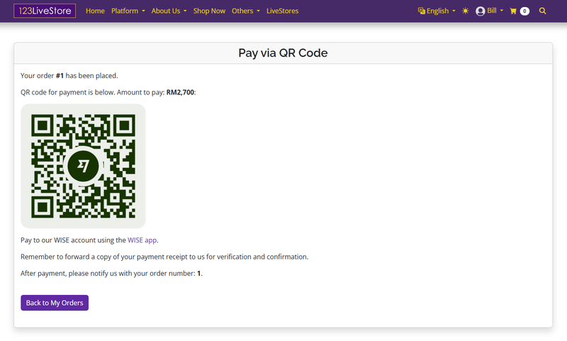 Click on an available payment method to make your payment. Let's choose payment via QR Code, which will bring up the QR Code page: