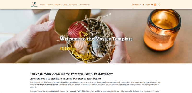 Once your site has been deployed, go to your website by typing your domain name in the web browser, and you should see the template you purchased. In this guide, we selected the Master Store WaaS Template as shown below:
