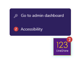 Start by logging in to your site using the login credentials emailed to you. Upon a successful login, you will see the 123LiveStore logo appear at the bottom right-hand corner of your screen. Click the logo, and a menu will pop up with a link, 'Go to admin dashboard' as shown below: